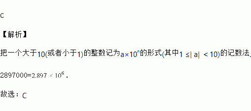 从权威部门获悉,中国海洋面积是2897000平方公里,2897000用科学记数法表示为