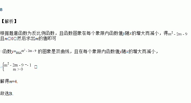 函数y=mx的图象是双曲线,且在每个象限内函数值y随x的增大而减小,则m的值是( )