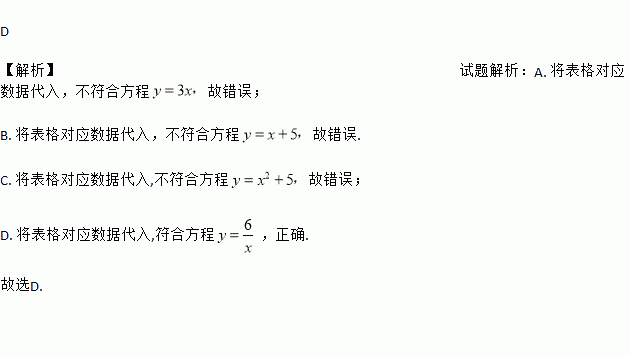 已知两个变量x和y,它们之间的三组对应值如下表所示: