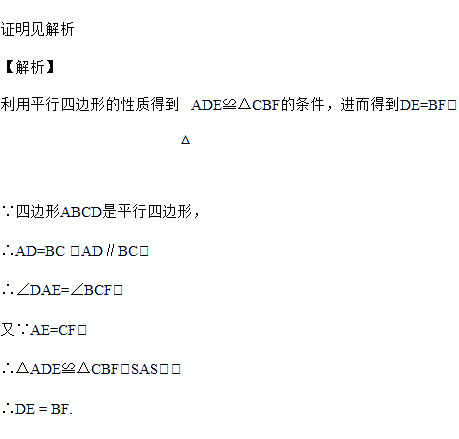 如图,点E、F在□ABCD的对角线AC上,且AE=CF. 求证:DE = BF.