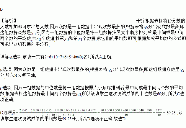 成绩(分) | 45 | 50 | 55 | 60 | 65 | 68 | 70 |