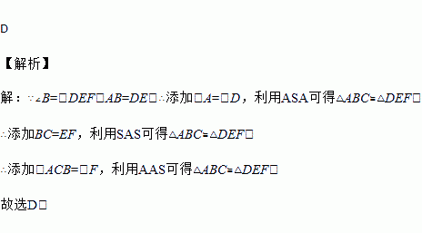 如图,在△ABC和△DEF中,∠B=∠DEF,AB=DE,若添加下列一个条件后,仍然不能证明△ABC≌△DEF,则这个条件是( )