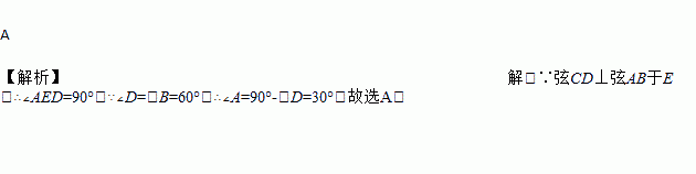 如图,⊙O中,弦CD⊥弦AB于E,若∠B=60°,则∠A=( )