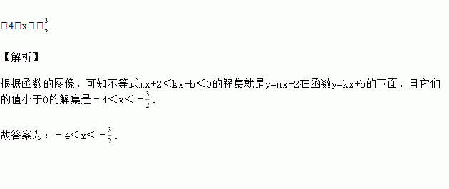 如图,平面直角坐标系中,经过点B(﹣4,0)的直线y=kx+b与直线y=mx+2相交于点A(,-1),则不等式mx+2<kx+b<0的解集为_____.