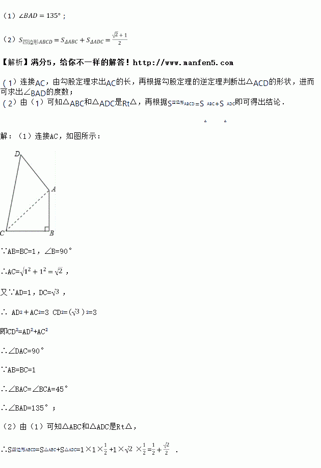 试求:(1)的度数;(2)四边形的面积(结果保留根号);