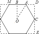 点评:此题主要考查了折叠变换以及正六边形的性质,根据已知得出AB=MB,AO=AM,再利用解直角三角形求出是解决问题的关键.