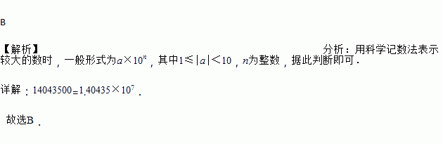 据统计部门发布的信息,广州2016年常驻人口14043500人,数字14043500用科学记数法表示为( )