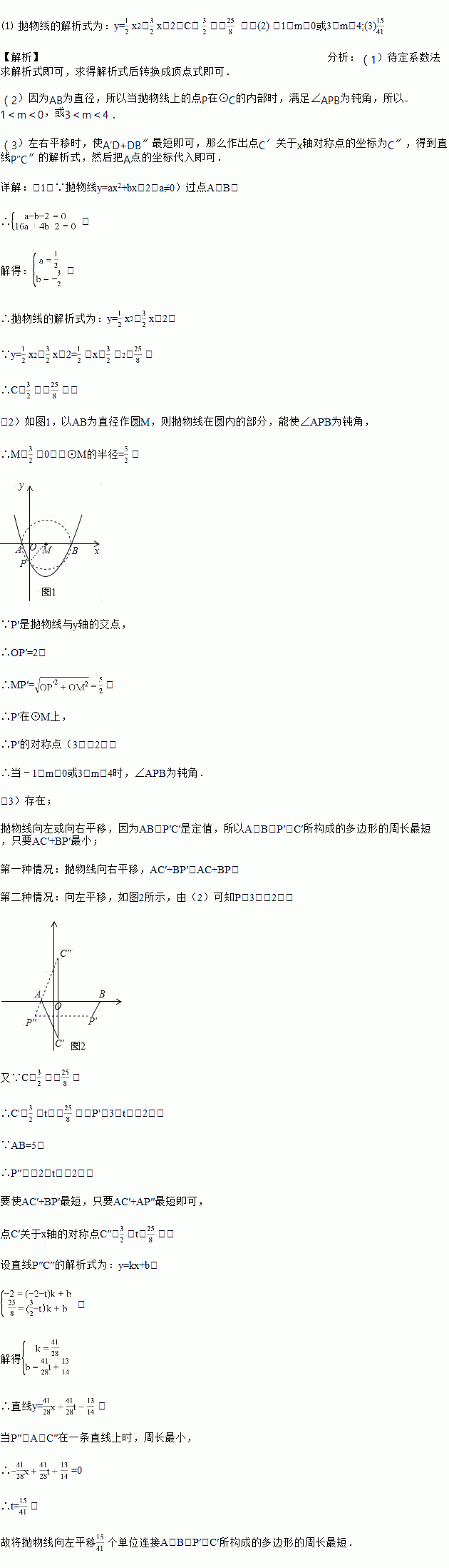 (2)当∠APB为钝角时,求m的取值范围;