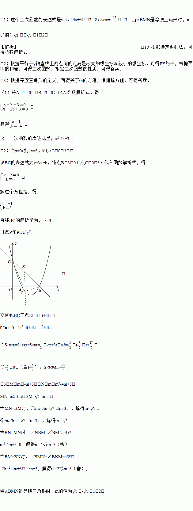 (3)直线x=m分别交直线BC和抛物线于点M,N,当△BMN是等腰三角形时,直接写出m的值.