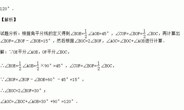 如图,已知∠AOB=90°,∠EOF=60°,OE平分∠AOB,OF平分∠BOC,求∠AOC和∠COB的度数.