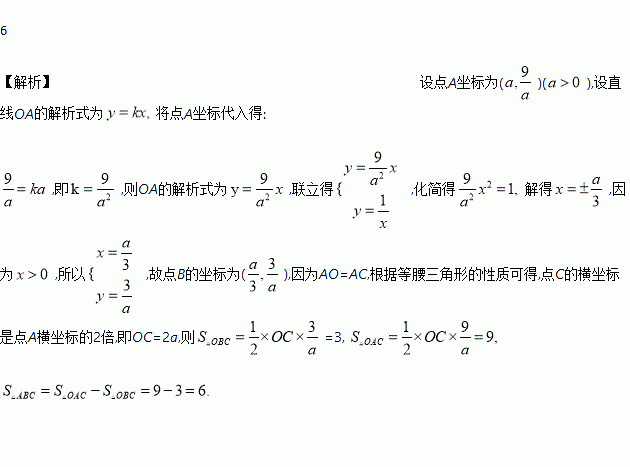 (2016·宁波中考)如图,点A为函数y= (x>0)图象上一点,连接OA,交函数y= (x>0)的图象于点B,点C是x轴上一点,且AO=AC,则△ABC的面积为________.