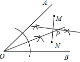 分析:作∠AOB的平分线与线段MN的垂直平分线,两条线的交点就是P点.