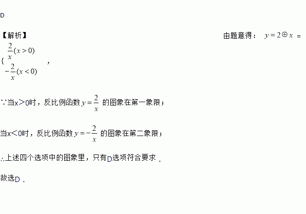 定义新运算:a⊕b=例如:4⊕5=,4⊕(﹣5)=.则函数y=2⊕x(x≠0)的图象大致是( )
