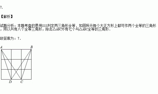 如图,方格纸中△ABC的3个顶点分别在小正方形的顶点(格点)上,这样的三角形叫格点三角形,图中与△ABC全等的格点三角形共有 个(不含△ABC).