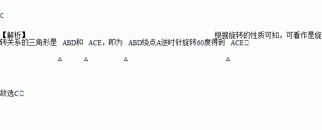 如图, △ABC和△ADE均为正三角形,则图中可看作是旋转关系的三角形是( )