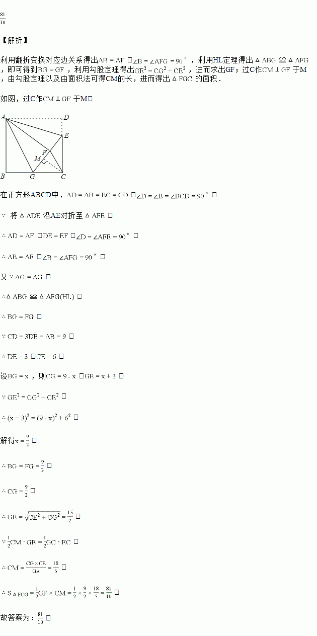 如图,正方形ABCD中,,点E在边CD上,且将沿AE对折至,延长EF交边BC于点G,连接AG、则的面积是______.