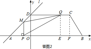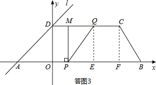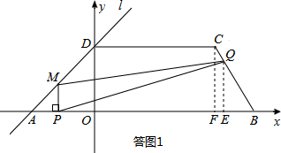 (4)随着P,Q两点的运动,当点M在线段DC上运动时,设PM的延长线与直线l相交于点N,试探究:当t为何值时,△QMN为等腰三角形?请直接写出t的值.