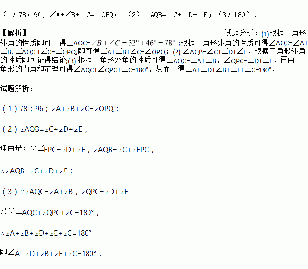 等于图中哪三个角的和?并说明理由;