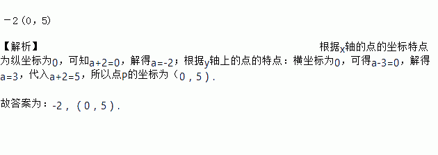 已知点P(a-3,a+2),若点P在x轴上,则a=_______;若点P在y轴上,则点P的坐标为______________