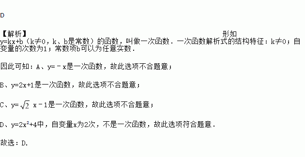 A. y=﹣x B. y=2x+1 C. y=x﹣1 D. y=2x2+4
