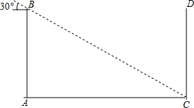 分析:(1)首先设太阳光与CD的交点为E,连接BD,易得四边形ABD是矩形,然后在Rt△BDE中,由DE=BD•tan30°即可求得答案;