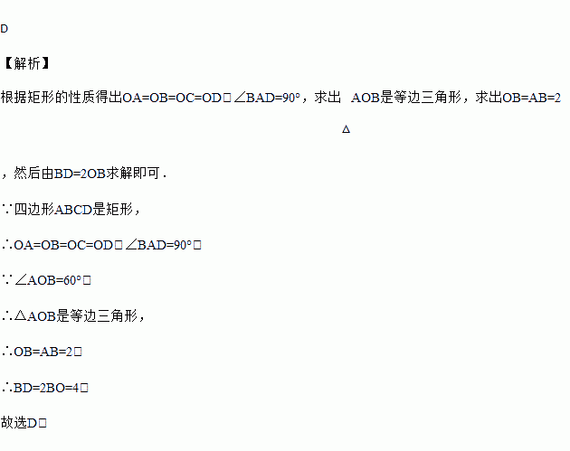 如图,在矩形ABCD中,对角线AC与BD相交于点O,,,则BD的长是