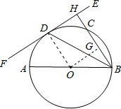 分析:(1)连接OD,根据切线的性质以及BH⊥EF,即可证得OD∥BC,然后根据等边对等角即可证得;