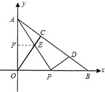 分析:(1)过点E作EF⊥OA于F,则EF是△OAE的高,易知OA的长,根据△OAE的面积即可求得EF的值,易证得△OEF∽△BAO,根据相似三角形所得比例线段即可求得OE的长,也就能得到E点的坐标.