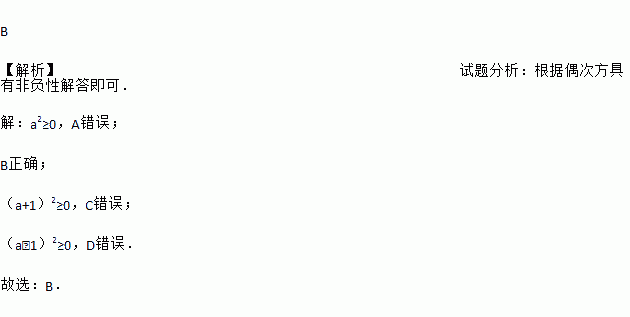 A. a2>0 B. a2≥0 C. (a+1)2>1 D. (a﹣1)2>1