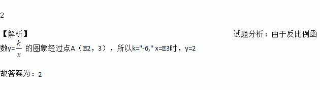 已知反比例函数(k≠0)的图象经过点A(-2,3),则当x=-3时,y=_____.
