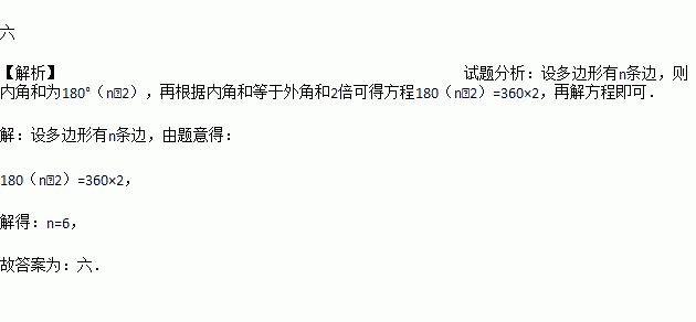内角和是外角和的2倍的多边形是___________边形.