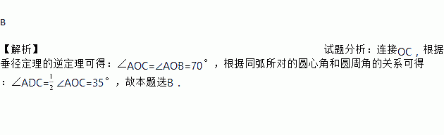 已知:如图,在⊙O中,OA⊥BC,∠AOB=70°,则∠ADC的度数为( )