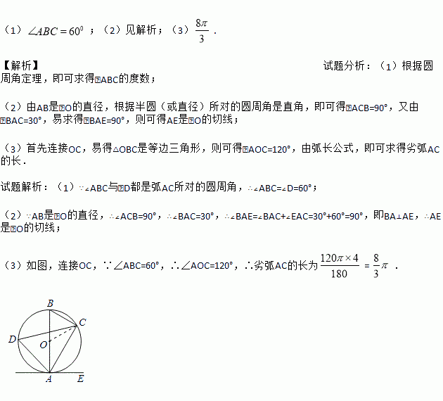 如图,已知AB是⊙O的直径,点C、D在⊙O上,点E在⊙O外,∠EAC=∠D=60°.