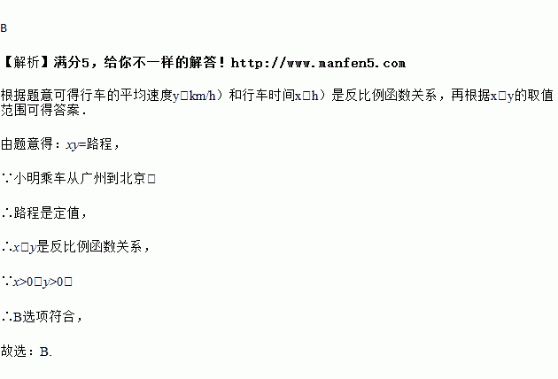 小明乘车从广州到北京,行车的平均速度和行车时间之间的函数图象( )