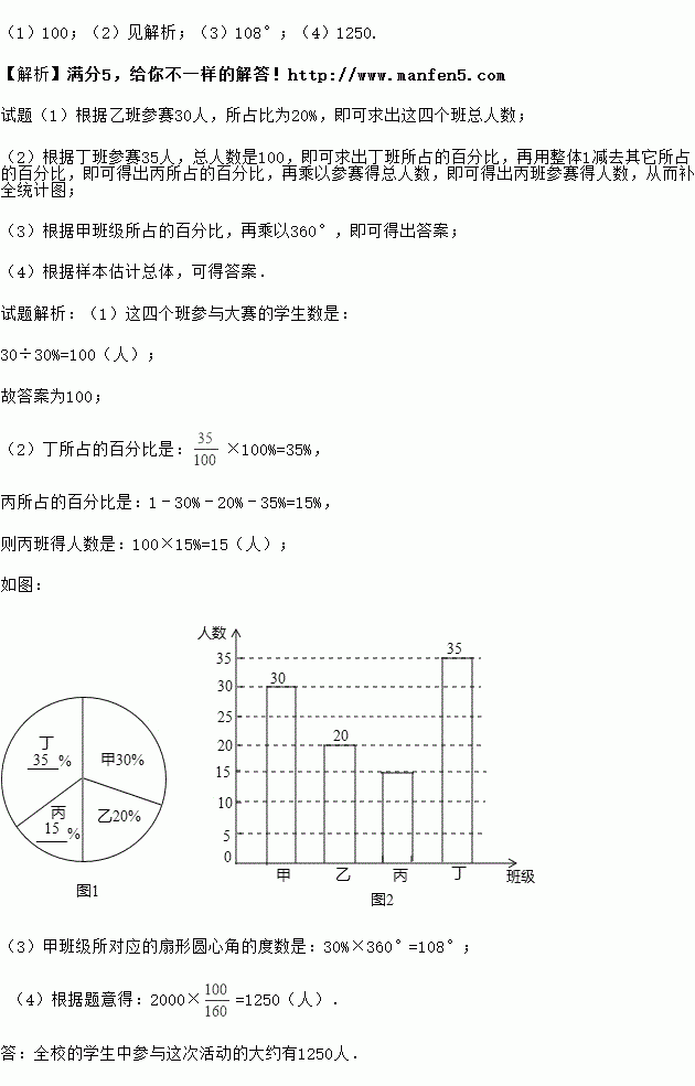 (4)若四个班级的学生总数是160人,全校共2000人,请你估计全校的学生中参与这次活动的大约有多少人.
