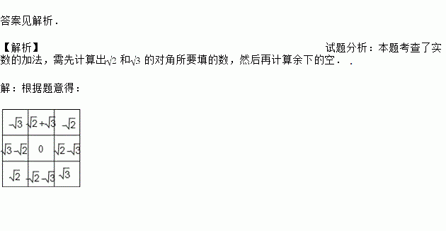 在图中填上恰当的数,使每一行、每一列、每一条对角线上的3个数的和都是0.