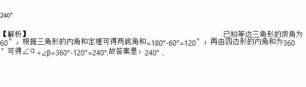 如图,一个等边三角形纸片,剪去一个角后得到一个四边形,则图中∠α+∠β=_____.