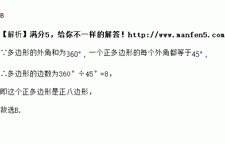 若一个正多边形的每个外角都等于45°,则它是( )