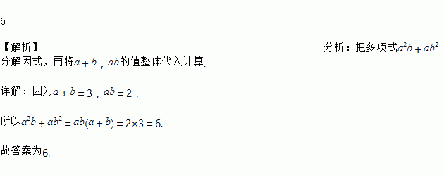 已知a+b=3,ab=2,则代数式a2b+ab2的值为__________.