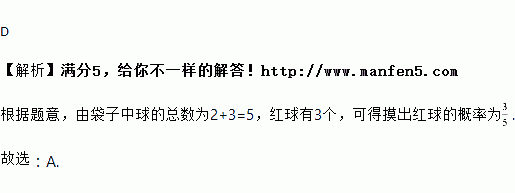 在一个不透明的口袋中,装有3个红球,2个白球,除颜色不同外其余都相同,则随机从口袋中摸出一个球为红色的概率是( )
