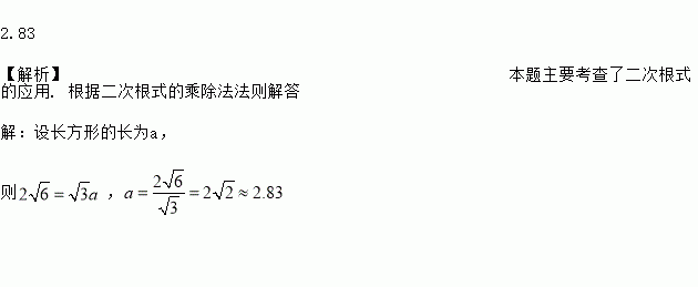 长方形的宽为,面积为,则长方形的长约为 (精确到0.01)。