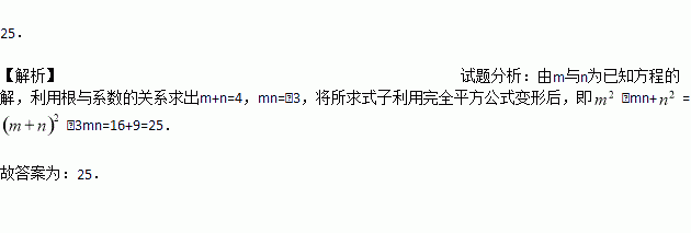 已知一元二次方程的两根为m,n,则= .