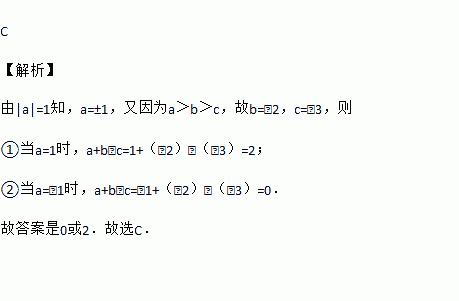 |a|=1,|b|=2,|c|=3, 且a > b >c,则a+b-c=( ).