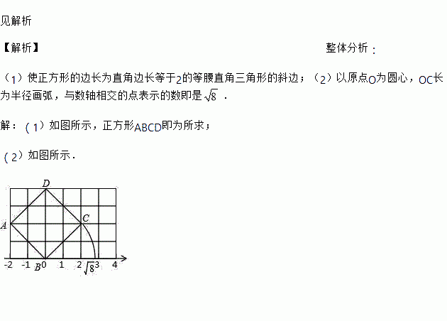 (1)请在方格中作出一个正方形,满足下列两个条件: