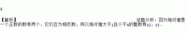 绝对值大于1而小于4的整数有__________个.