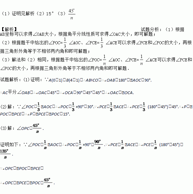 Èçͼ¢Ù£¬ÔÚÆ½ÃæÖ±½Ç×ø±êϵÖУ¬A(0£¬1)£¬B(4£¬1)£¬CΪxÖáÕý°ëÖáÉÏÒ»µã£¬ÇÒACƽ·Ö¡ÏOAB.