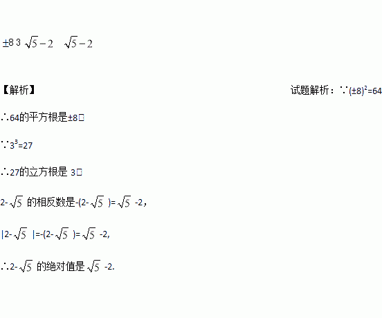 64的平方根是_____,27的立方根是_____;2﹣
