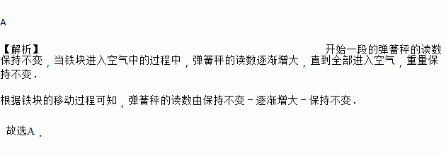 如图,挂在弹簧秤上的长方体铁块浸没在水中,提着弹簧秤匀速上移,直至铁块浮出水面停留在空中(不计空气阻力),弹簧秤的读数F(N)与时间t(s)的函数图象大致是( )