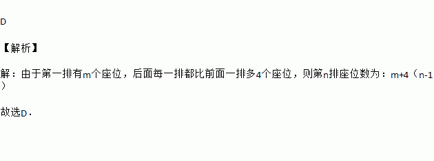 某学校阶梯教室,第一排有m个座位,后面每一排都比前面一排多4个座位,则第n排座位数是( )