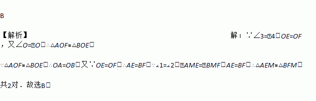 如图,∠1=∠2,∠3=∠4,OE=OF,则图中全等的三角形有( )